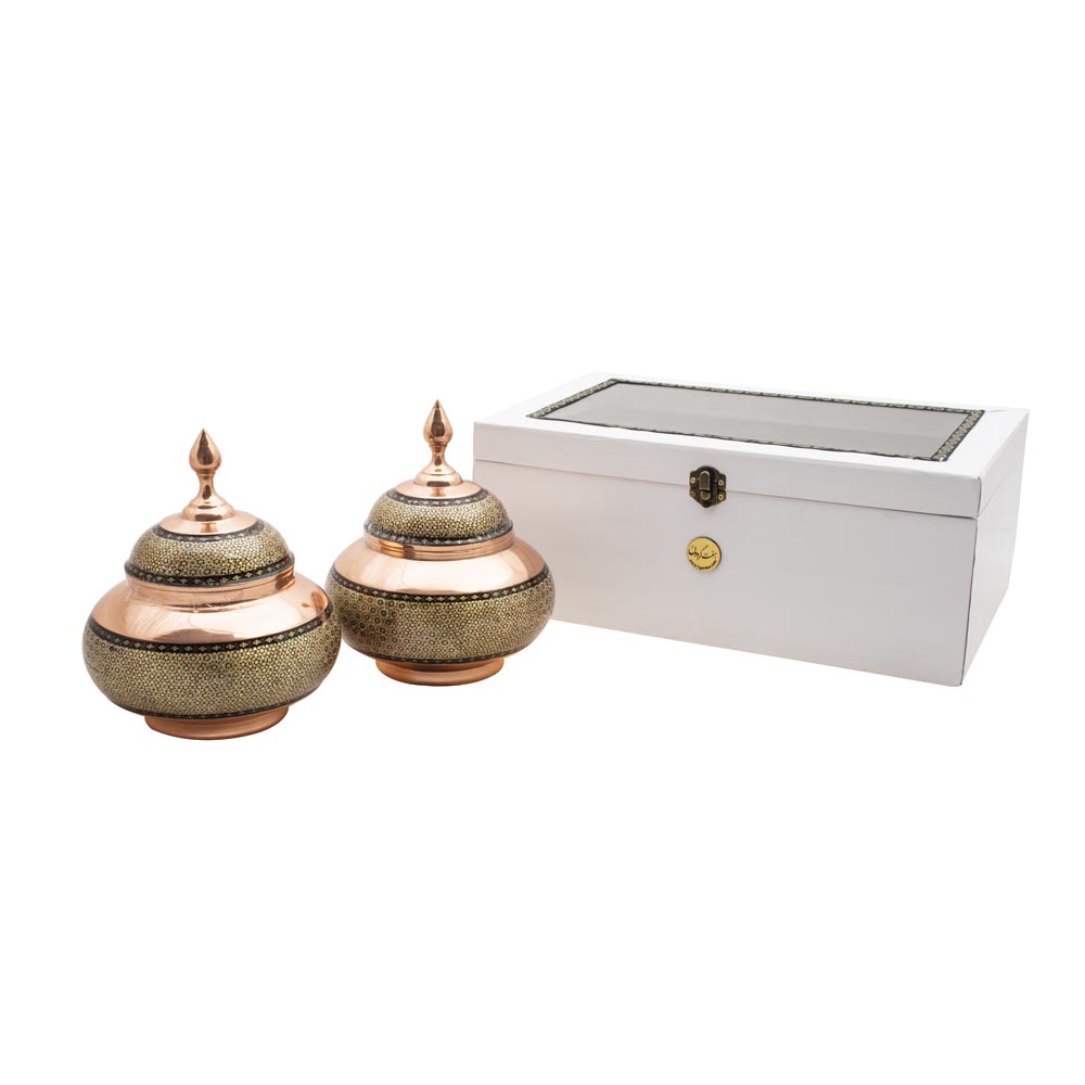 ست هدیه خاص قندان خاتم کاری شکیل از مجموعه صنایع دستی ایران، با زیبایی و ظرافت خیره کننده در ساخت، و بسته بندی شکیل روکش چرم همچنین جعبه pvc طرح چوب و طرح خاتم هدیه ای مناسب جهت مناسبت های گوناگون در طی ایام سال میباشد.
