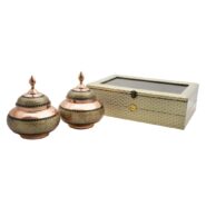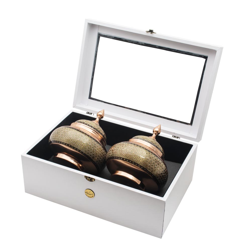 خاتم کاری همیشه جزء صنایع دستی نفیس و فاخر ایران محسوب میگردد که هدیه دادن آن نشان از علاقه، احترام و شأن و مرتبه هدیه گیرنده میباشد. پس با خیالی آسوده می توانید این پکیج هدیه خاص قندان خاتم کاری را به عزیزان و یا مدیران و شرکای تجاری خود اهدا نمایید.